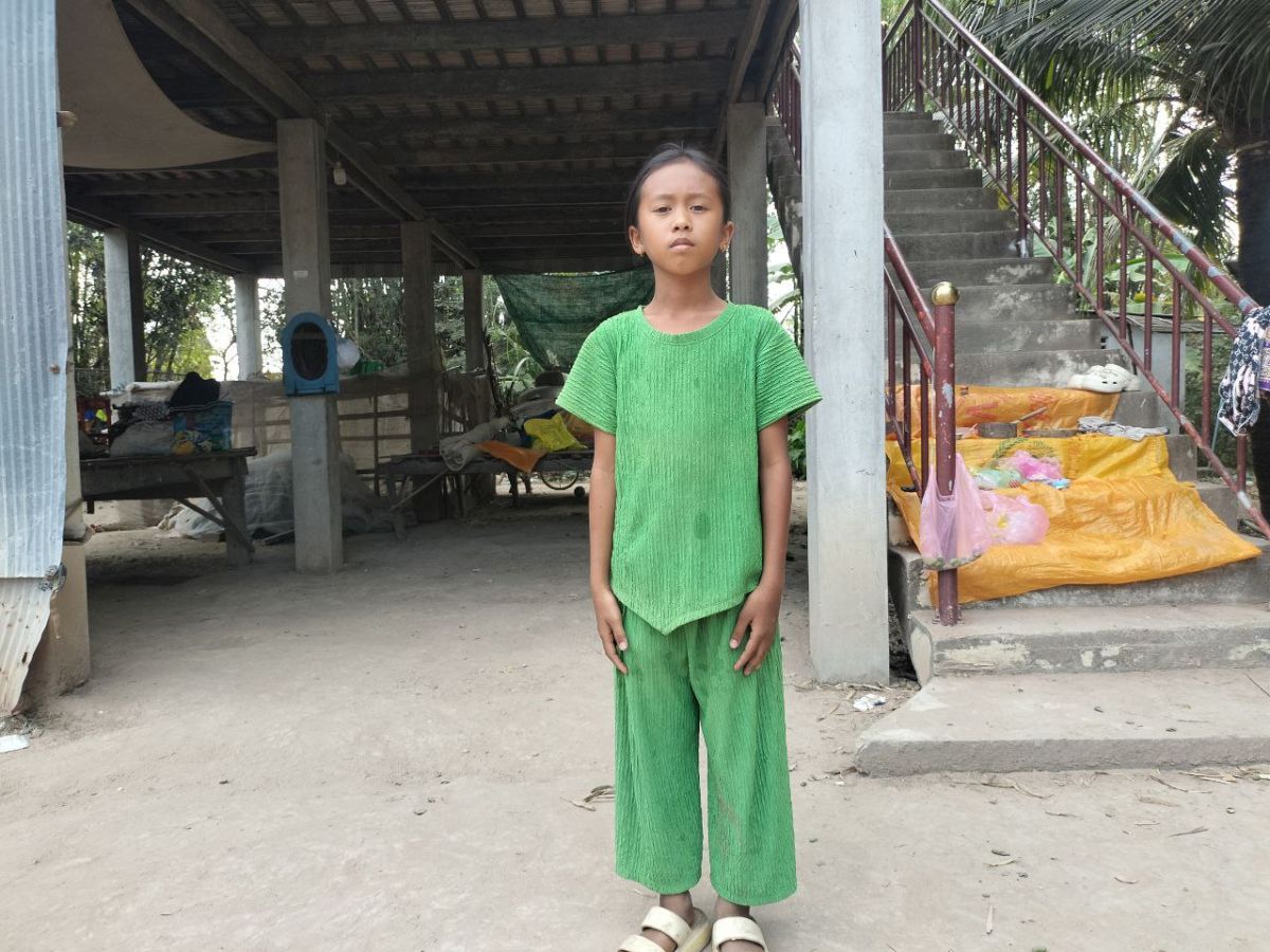 Thon Sana is a 10-year-old girl currently studying in Grade 4. Her father works as a construction worker in Phnom Penh, while her mother has followed him there after recently giving birth and is now staying at home to care for the newborn baby. Sana and her three siblings are being cared for by their grandmother. Each month, her father sends back approximately 100,000 riels (about SGD 18–19) to support the family. This amount is used to buy rice and food for the household, as well as to cover the children’s school expenses. In addition, the father is still repaying hospitalization and medical expenses incurred during his wife’s treatment for kidney stones. With these ongoing financial obligations, it is extremely challenging for him to support a family of six members on his limited income.