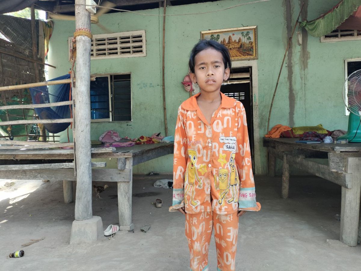 Her mother is seriously ill with breast cancer and can only send 50,000 riels per month (approximately SGD 16) to help support the children. The three children are primarily cared for by their grandparents, who are in their seventies, while the family relies on the support of a nearby aunt for daily food.